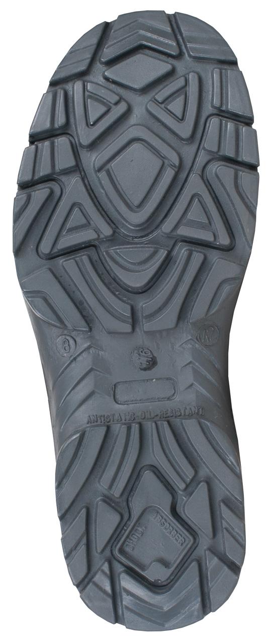 Verneskolett i lær og tekstil med 3D funksjons fôr som gir god ventilasjon. Vernetå og spikertrampsåle i stål. Anatomisk og antistatisk innersåle. Oljebestandig yttersåle i to-komponent PU/PU med ekstra tå-forsterker. Farge: Sort med hvite detaljer. Sertifisering: ISO 20345:2011 S3 SRC.