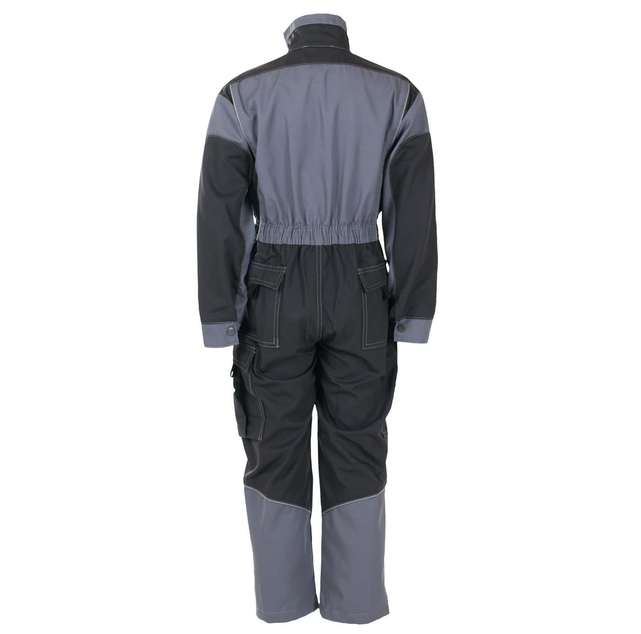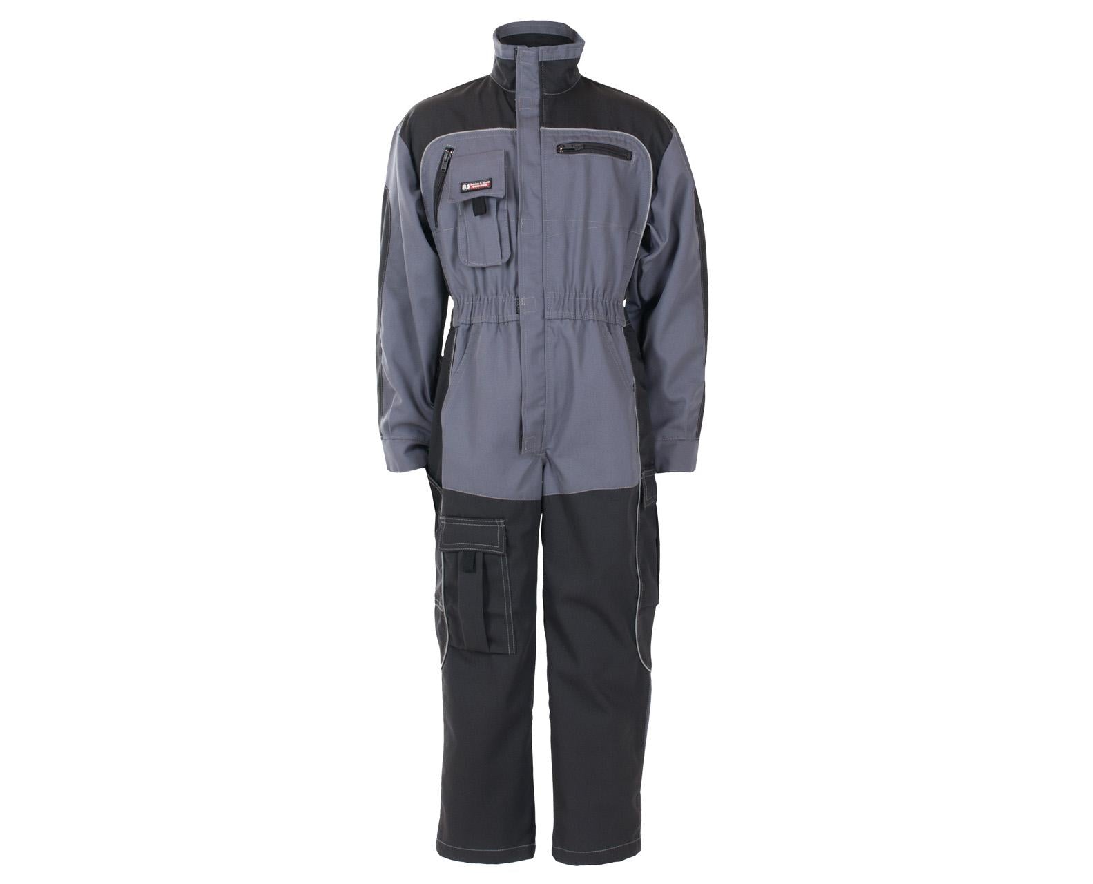 Kjeledress til barn med strikk i liv, glidelås i front med klaff, gjennomgrep, stikklommer, tommestokklomme, brystlommer, to lårlommer og mobillomme.