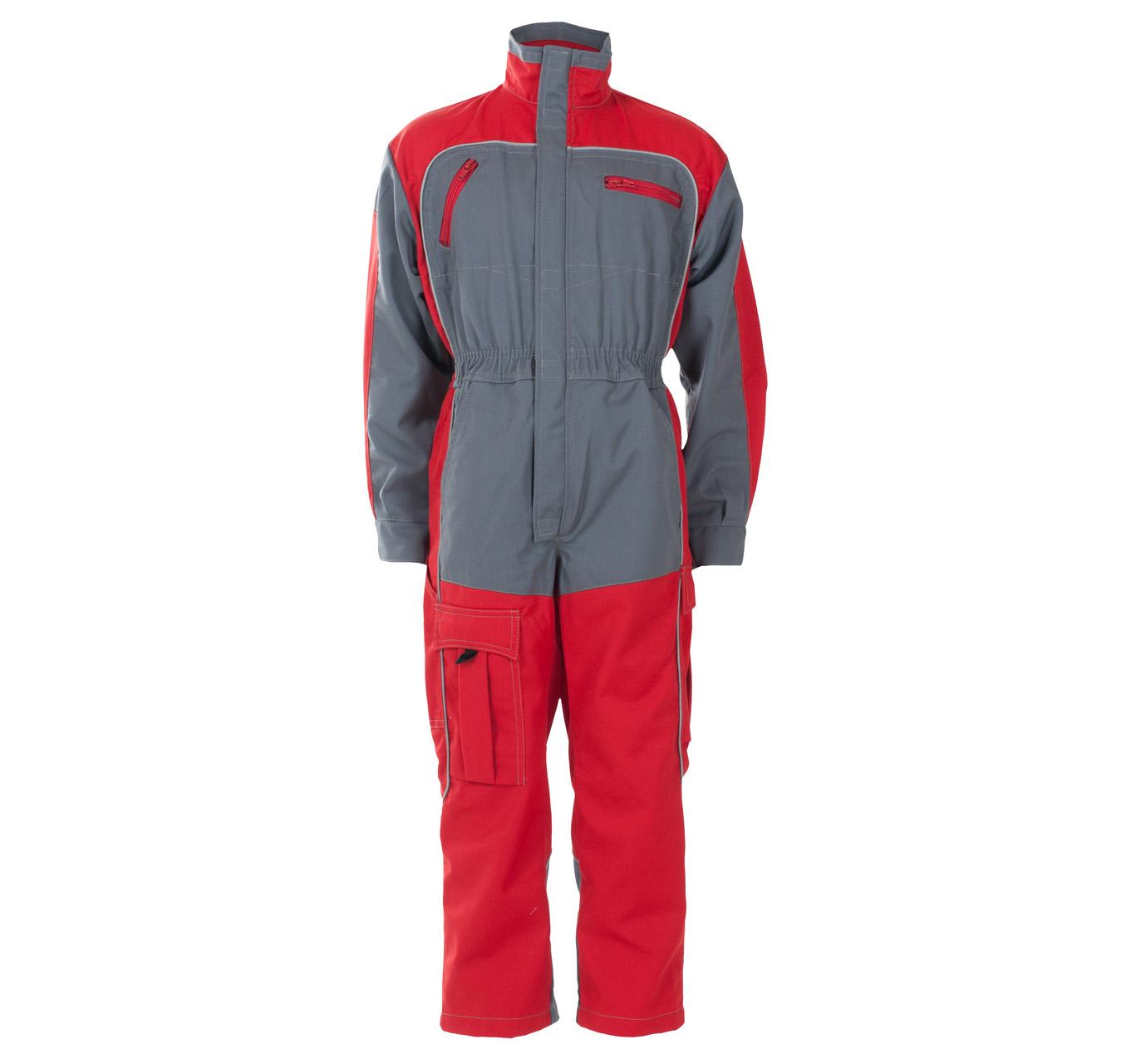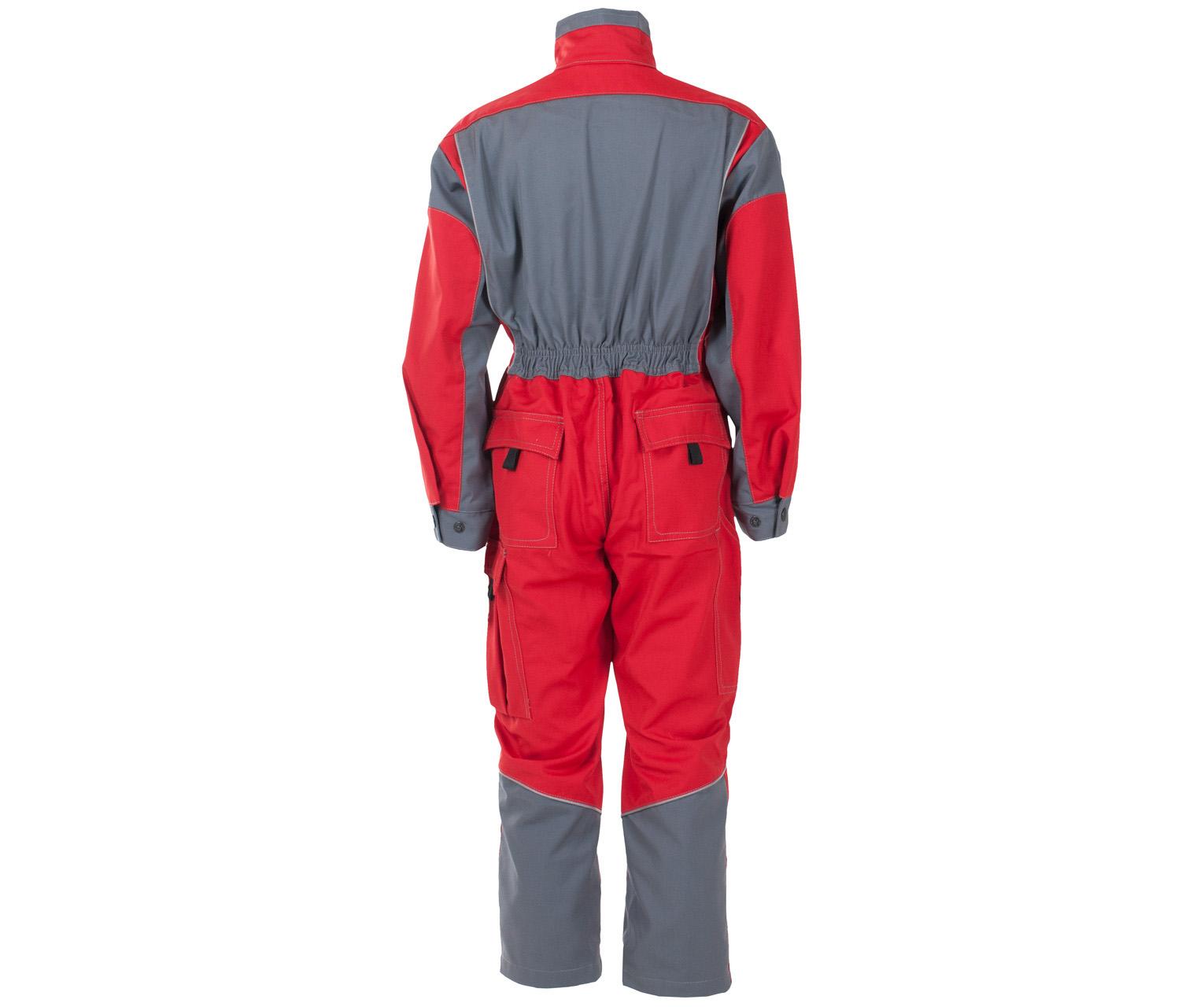 Kjeledress for barn med strikk i liv, glidelås i front med klaff, gjennomgrep, stikklommer, tommestokklomme, brystlommer, to lårlommer og mobillomme.