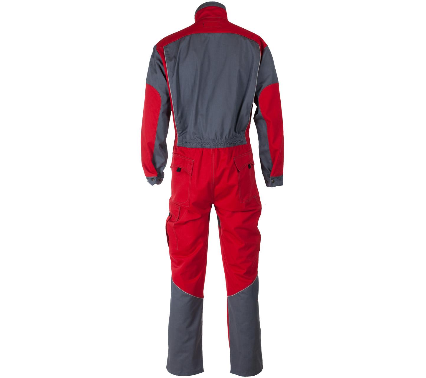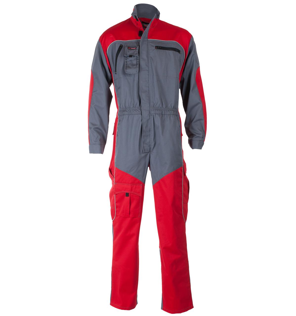 Kjeledress med strikk i liv, glidelås i front med klaff, gjennomgrep, stikklommer, tommestokklomme, brystlommer, to lårlommer og mobillomme.