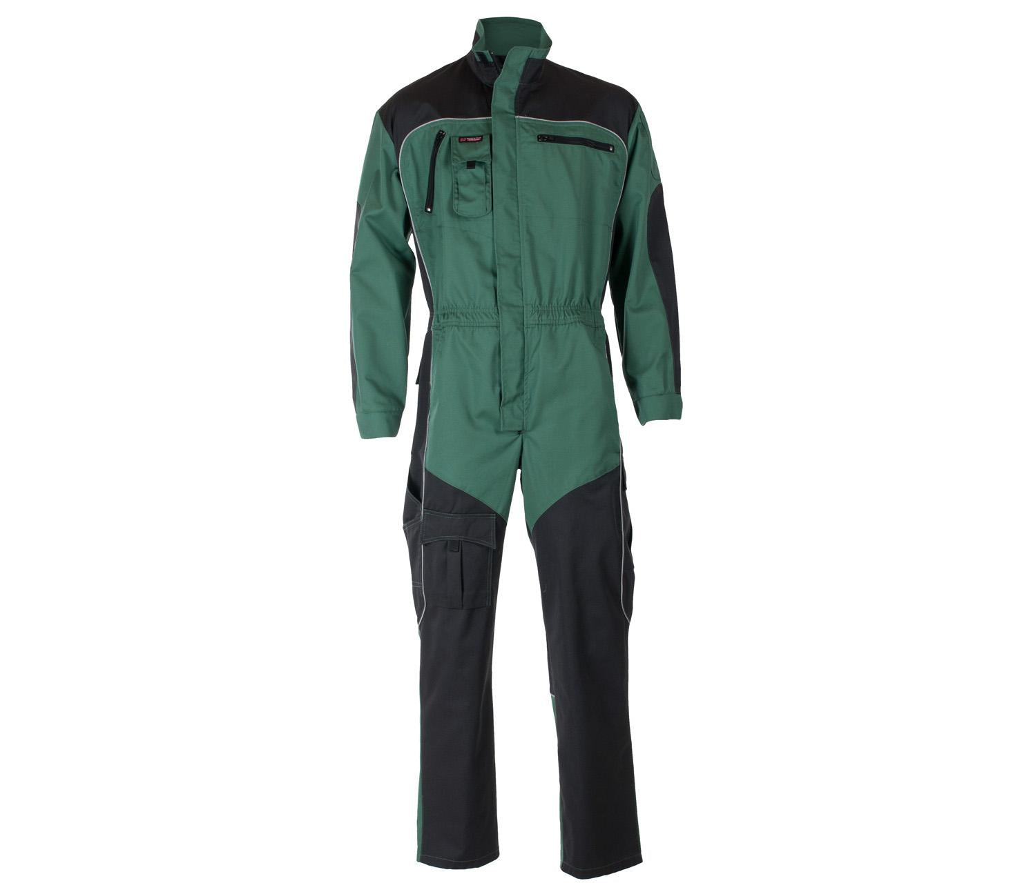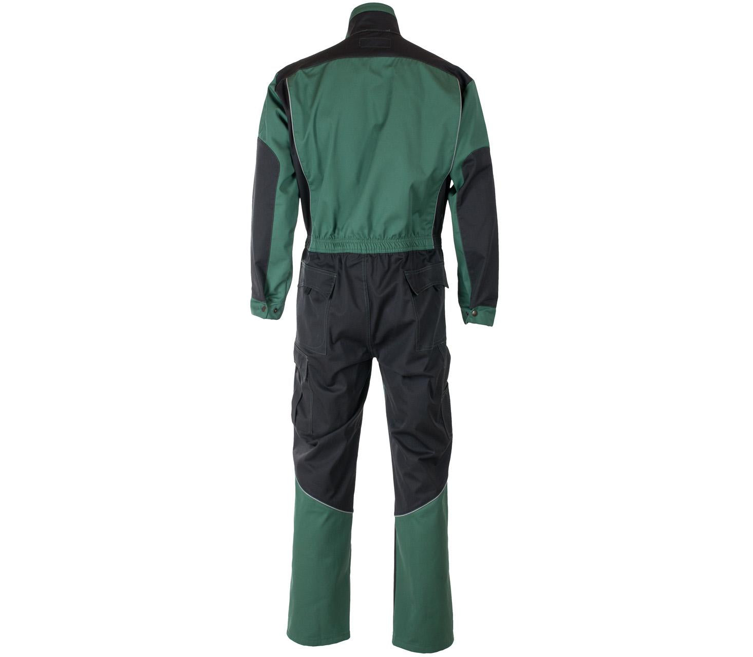 Kjeledress med strikk i liv, glidelås i front med klaff, gjennomgrep, stikklommer, tommestokklomme, brystlommer, to lårlommer og mobillomme.